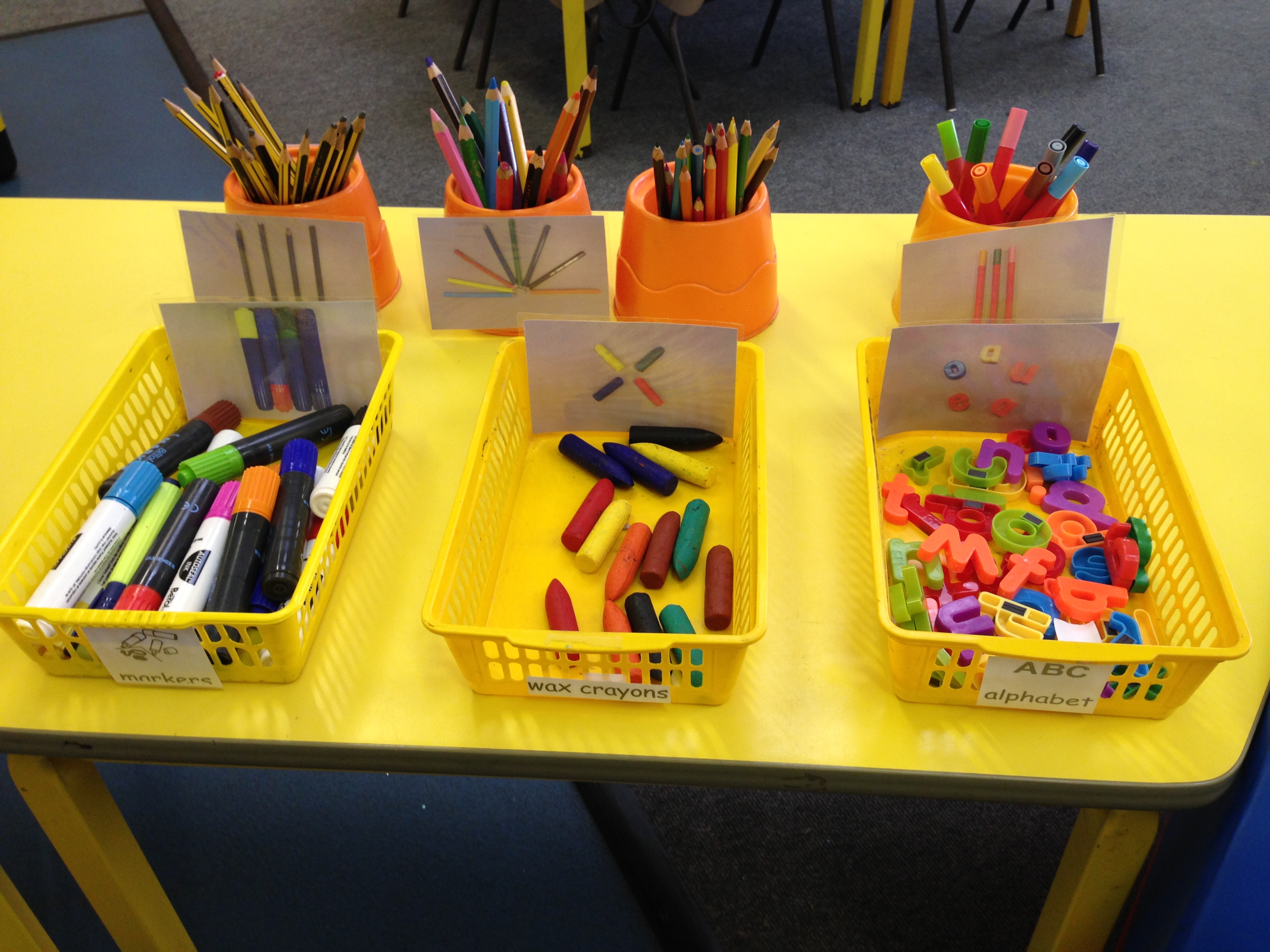 Last year I visited the Early Excellence centre for the first time, and I returned again this year. They provide training to early years and key stage 1 settings. I first heard of them after hearing Jan Dubiel speak at The University of Derby, so I had to visit the centre. The centre has a a model classroom as well as a resource centre which stocks the best quality resources for early years. The most exciting part of visiting the centre is seeing how they set up a classroom with these resources, and then being able to purchase resources individually (you can order online or from the catalogue but only in bulk packs). Think Early Learning Centre but with a focus on selling to teachers, nurseries and schools. What always strikes me about their provision is that their areas are colour co-ordinated. Each area of provision looks so much more accessible by simply placing resources in colour matching trays. As I have set up my new classroom almost from scratch, I thought it would be a great opportunity to apply this. Take a look at these areas with colour coded containers.