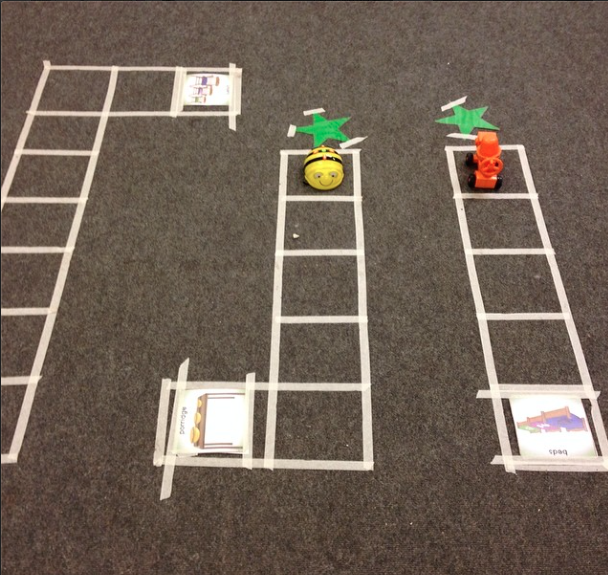 I always start ‘coding’ with my class using masking tape grids on the carpet. Children give verbal instructions to their friend on the grids “forward, forward, forward, turn, forward”. They then start to record these on whiteboards using arrows or words, and they practise with trucks too. Our grids usually take some kind of story sequencing theme too. Soon we add BeeBots and introduce the apps as well. Infant this year one our Teaching Assistants made BeeBot masks and the children role played as human BeeBots outdoors!!