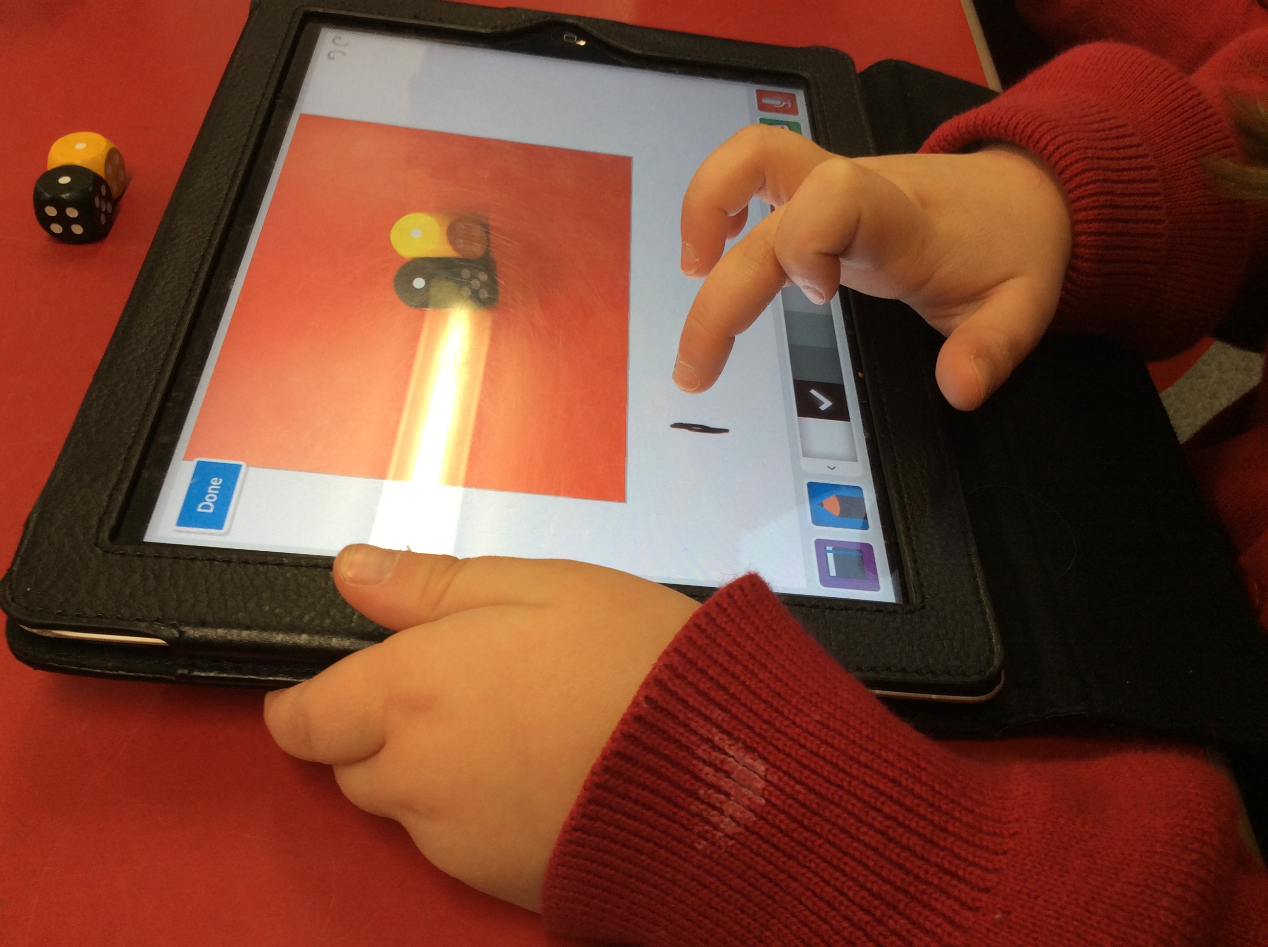 For a Maths Journal session, children use their iPads independently. The Maths Journal capture their independent maths or their exploration in play. It is a running journal of their own maths work and supports my assessment which informs adult-directed teaching. It means that children can produce work without making marks on paper or being questioned extensively after the activity has passed. It can focus them on using the resources for maths objectives.