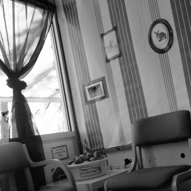 A real size home corner. this has been a great place to observe talk, with provoking images that can be changed displayed on vintage style (printed) frames. A comfy place to get fresh fruit or water, and a transition place from outdoors to indoors.