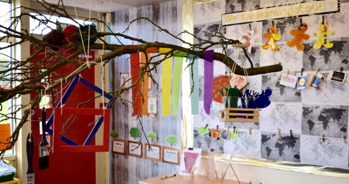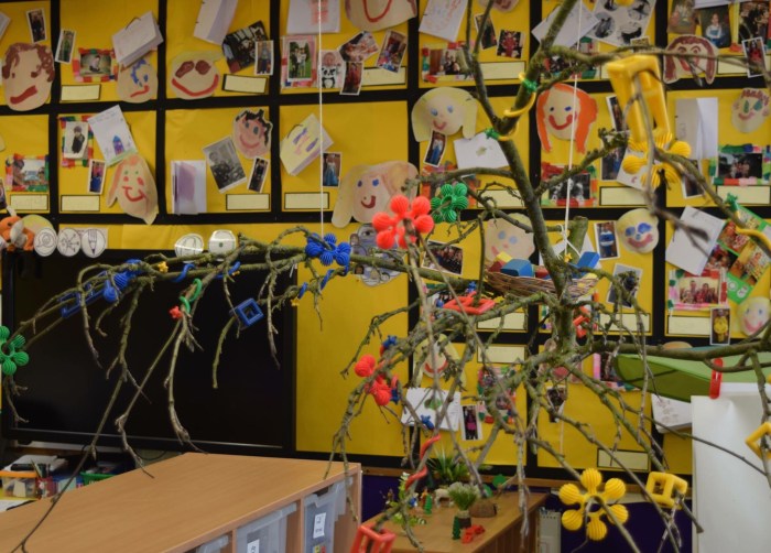 Now that we display colour through resources on suspended branches, our children’s eyes can focus on the content we want them to see on the walls.