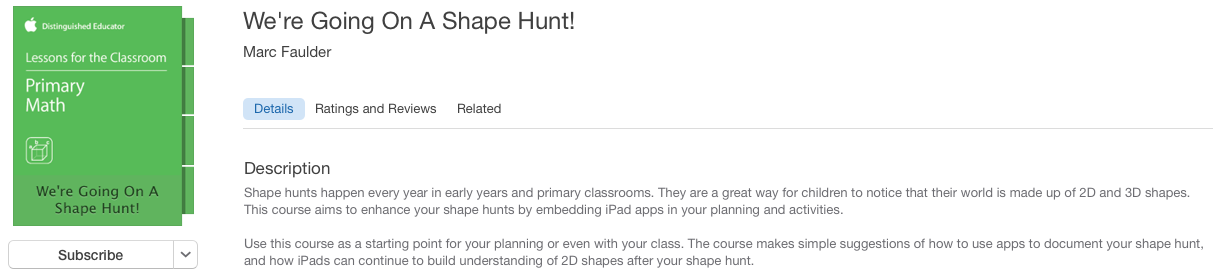 They are lesson plans, activities, ideas or examples of best practise and are designed to be put in to the hands of educators or students to further develop the use of iPads in the classroom. I am also very proud to announce that my own Lesson for the Classroom ‘We’re Going on a Shape Hunt’ has been published to this collection and is available to download for free right now.