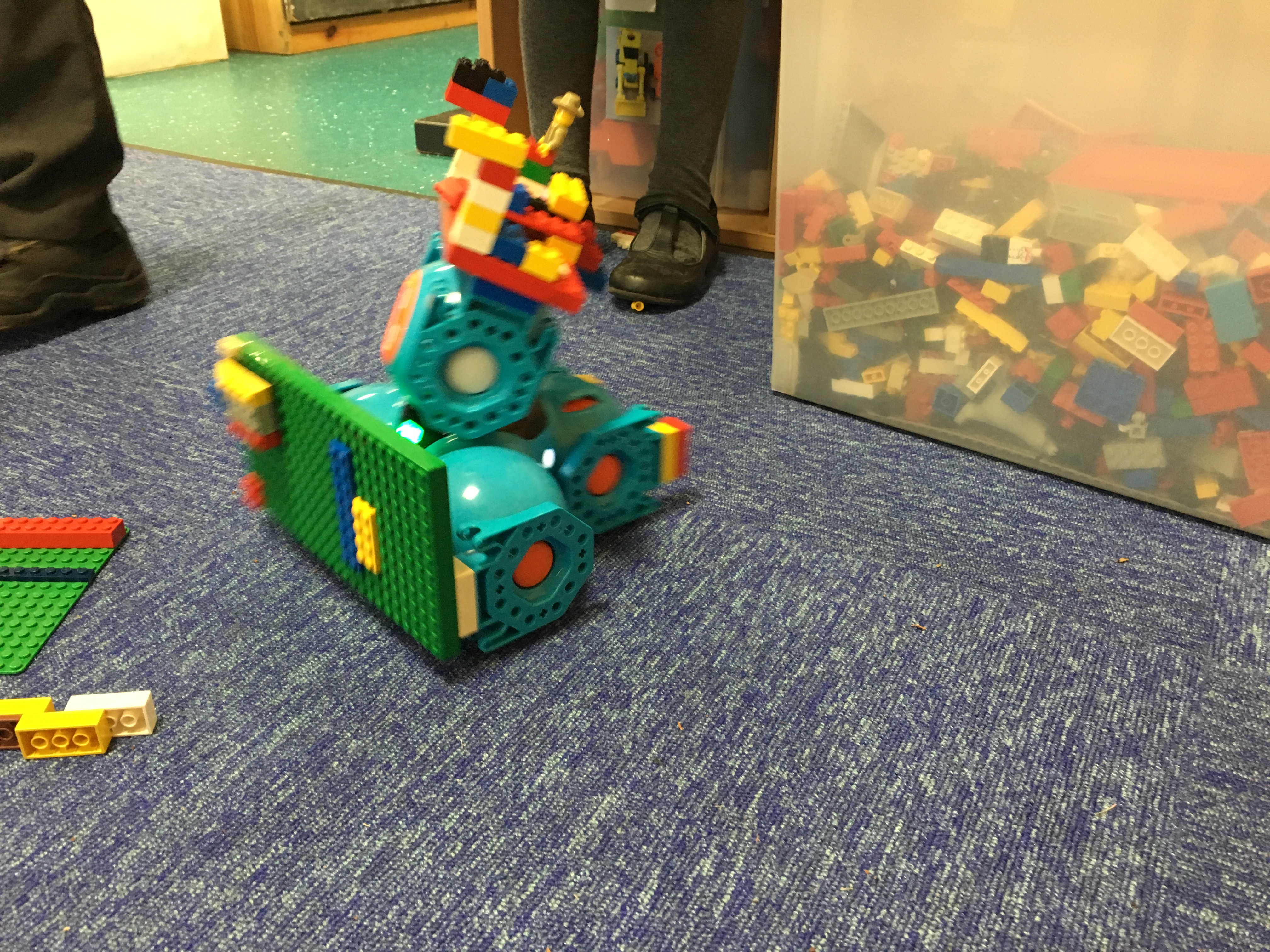 This activity is for use with Dash only, with 6 of the building brick connectors. Working in the construction area, with a box of Lego, children worked in peer groups to design and make a bumper car for the Goose Fair. They had a project brief: