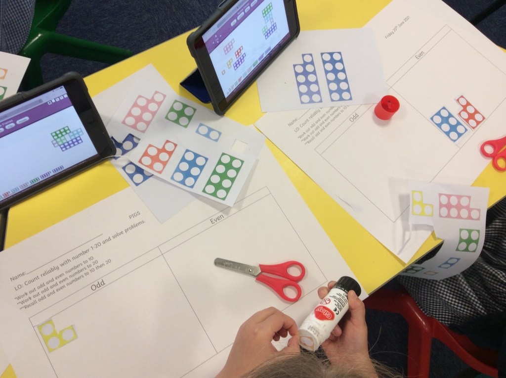 During this week of maths learning, the children have already used the physical Numicon pieces. They are now able to watch me sort the shapes on screen by odd and even, then recreate with their screens. As this practical activity is onscreen, learners can take this with them to complete other practical tasks with greater independence.