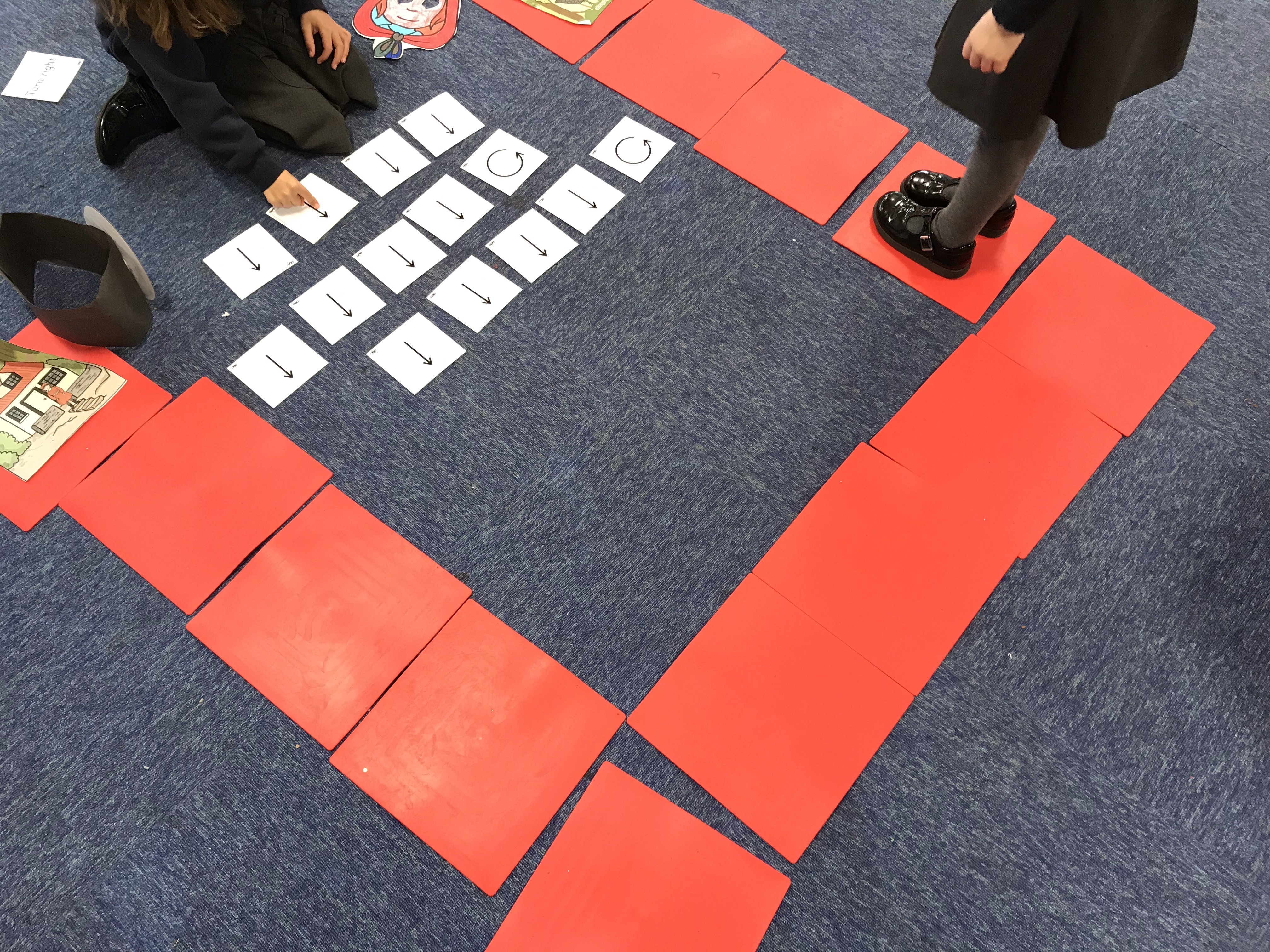 Start your class on a coding learning journey by role playing as robots. Use floor tiles to create mazes or grids to navigate as human robots. Their friends give them instructions to move forwards, backwards, left or right. They can collect objects along the way or move between point A and B. Teach the children the directional language which will help them to use toys like Bee-Bots. They can also place arrow cards on the carpet to communicate their instructions too!