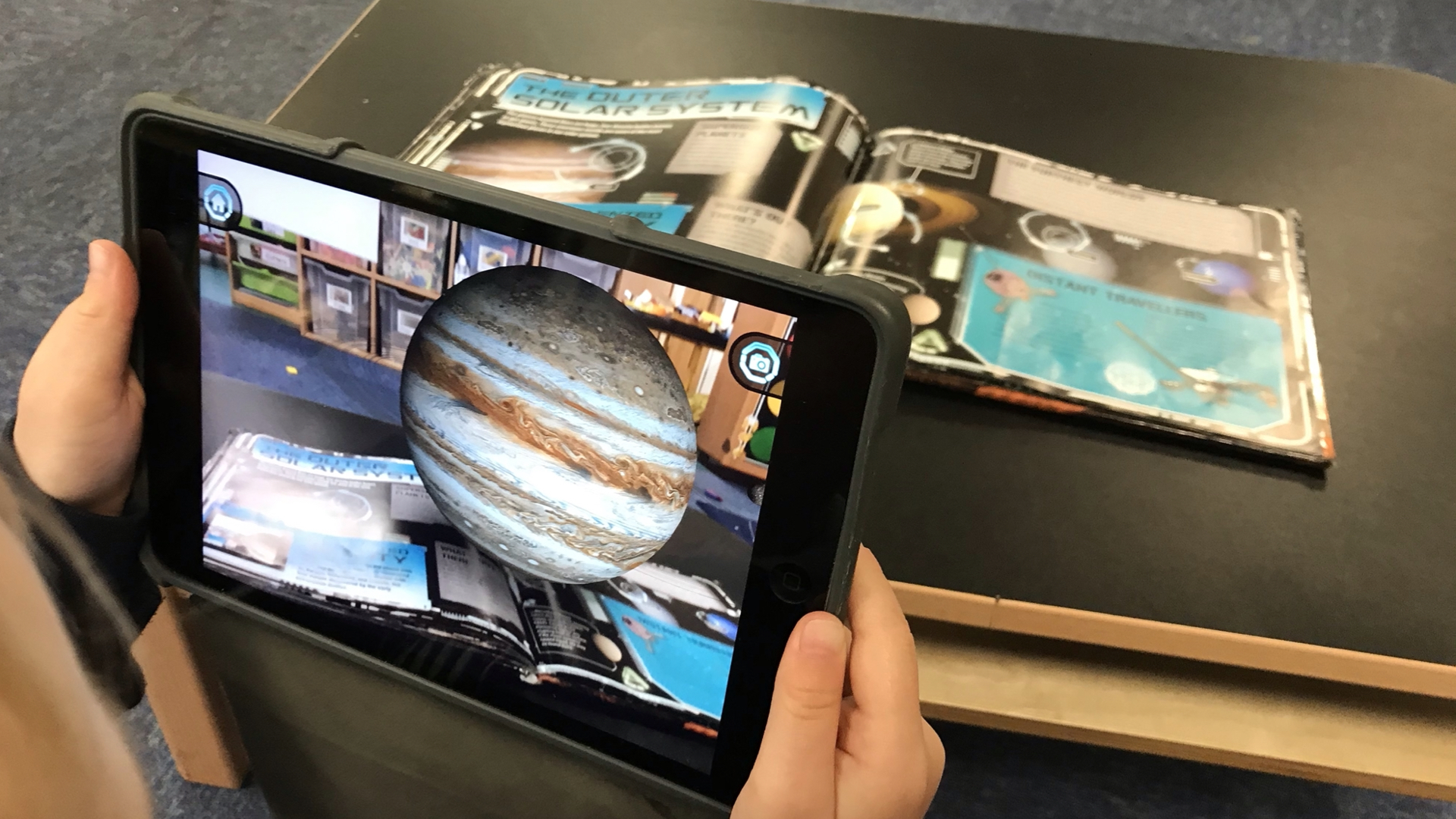 Whilst children are viewing these animated models and tracking the planets above their school you can talk to them about space or let them read and listen to the simple facts in the apps to build knowledge.