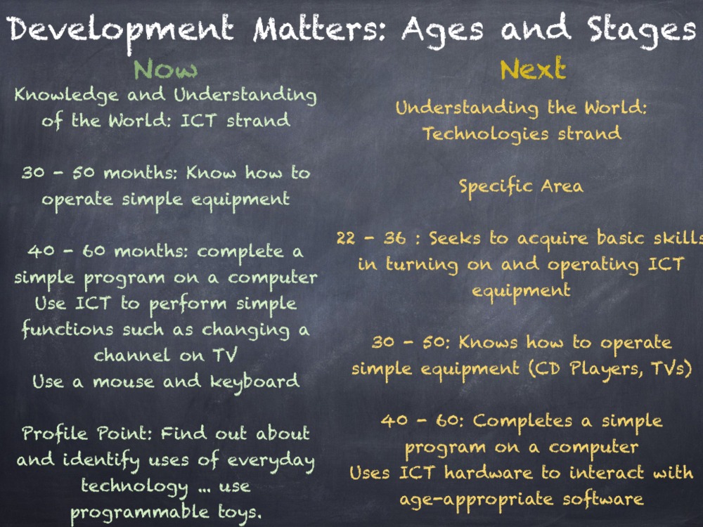 During the Summer Term I have been working in a variety of counties discussing my use of iPad and how I believe this tool has a strong place within the new Technologies strand.So what is happening in Development Matters?